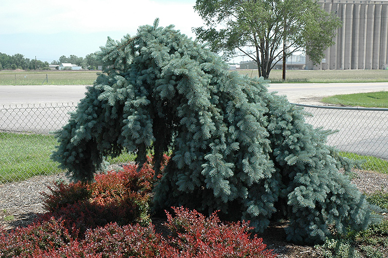 Weeping Blue Spruce is a dense evergreen tree with a strong central leader and a shapely form and gracefully arching branches. Its relatively fine texture sets it apart from other landscape plants with less refined foliage.
