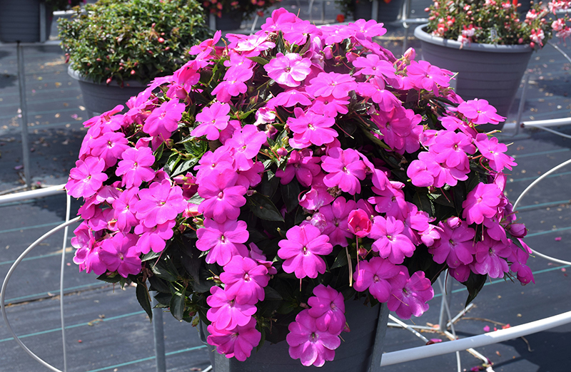 SunPatiens® Compact Lilac New Guinea Impatiens is a fine choice for the garden, but it is also a good selection for planting in outdoor containers and hanging baskets. It can be used either as 'filler' or as a 'thriller' in the 'spiller-thriller-filler' container combination, depending on the height and form of the other plants used in the container planting. It is even sizeable enough that it can be grown alone in a suitable container. Note that when growing plants in outdoor containers and baskets, they may require more frequent waterings than they would in the yard or garden.