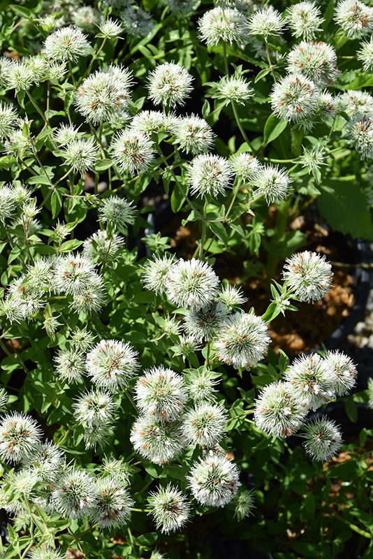An aromatic, summer bloomer that produces silvery-white globular flowers on sturdy upright stems; blooms persist from summer through fall; green foliage takes on a red tinge in fall; an excellent border or container plant