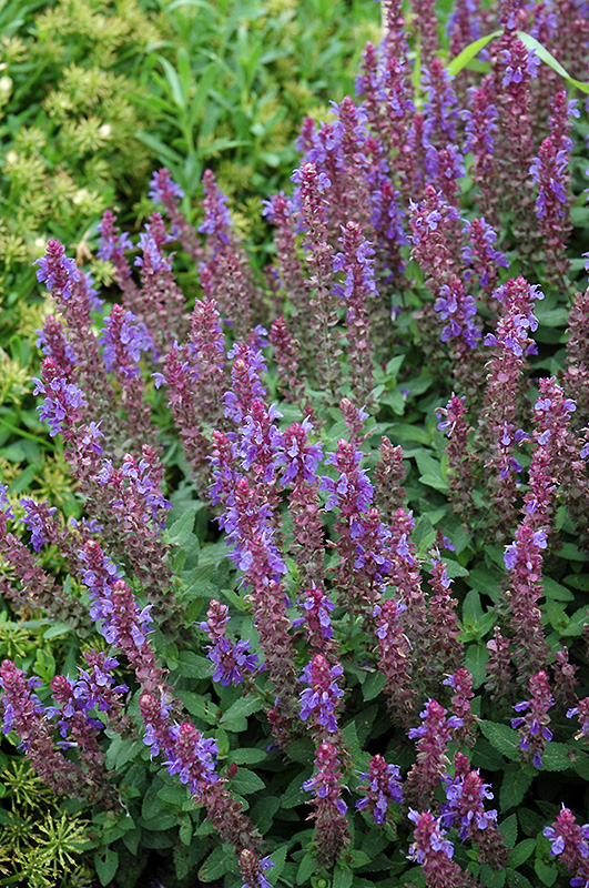 Sensation™ Sky Blue Meadow Sage will grow to be only 6 inches tall at maturity extending to 12 inches tall with the flowers, with a spread of 12 inches. When grown in masses or used as a bedding plant, individual plants should be spaced approximately 10 inches apart. It grows at a medium rate, and under ideal conditions can be expected to live for approximately 5 years. As an herbaceous perennial, this plant will usually die back to the crown each winter, and will regrow from the base each spring. Be careful not to disturb the crown in late winter when it may not be readily seen!