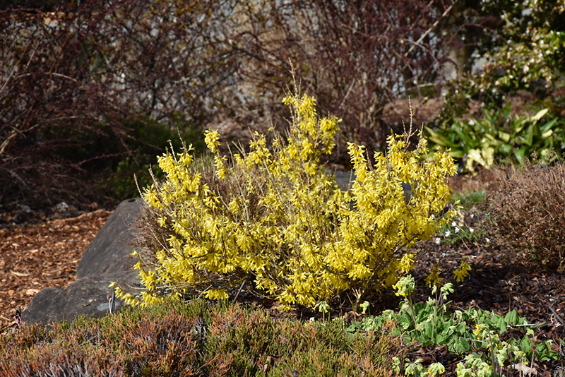 Bronx Forsythia will grow to be about 12 inches tall at maturity, with a spread of 3 feet. It tends to fill out right to the ground and therefore doesn't necessarily require facer plants in front. It grows at a medium rate, and under ideal conditions can be expected to live for approximately 30 years.