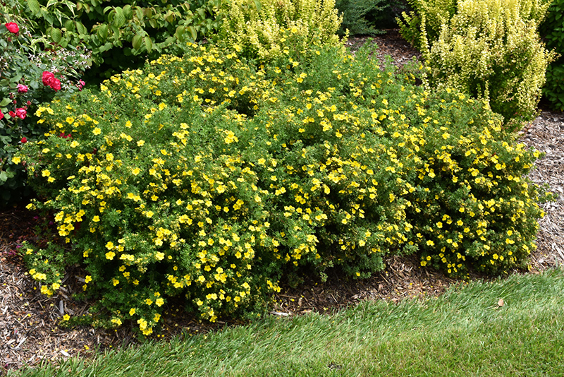 Happy Face® Yellow Potentilla will grow to be about 3 feet tall at maturity, with a spread of 3 feet. It tends to fill out right to the ground and therefore doesn't necessarily require facer plants in front. It grows at a slow rate, and under ideal conditions can be expected to live for approximately 30 years.