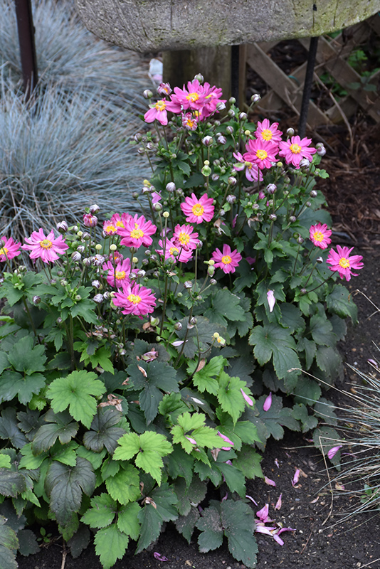 Curtain Call Deep Rose Anemone will grow to be about 12 inches tall at maturity extending to 16 inches tall with the flowers, with a spread of 16 inches. When grown in masses or used as a bedding plant, individual plants should be spaced approximately 14 inches apart. Its foliage tends to remain dense right to the ground, not requiring facer plants in front. It grows at a medium rate, and under ideal conditions can be expected to live for approximately 10 years. As an herbaceous perennial, this plant will usually die back to the crown each winter, and will regrow from the base each spring. Be careful not to disturb the crown in late winter when it may not be readily seen! As this plant tends to go dormant in summer, it is best interplanted with late-season bloomers to hide the dying foliage.