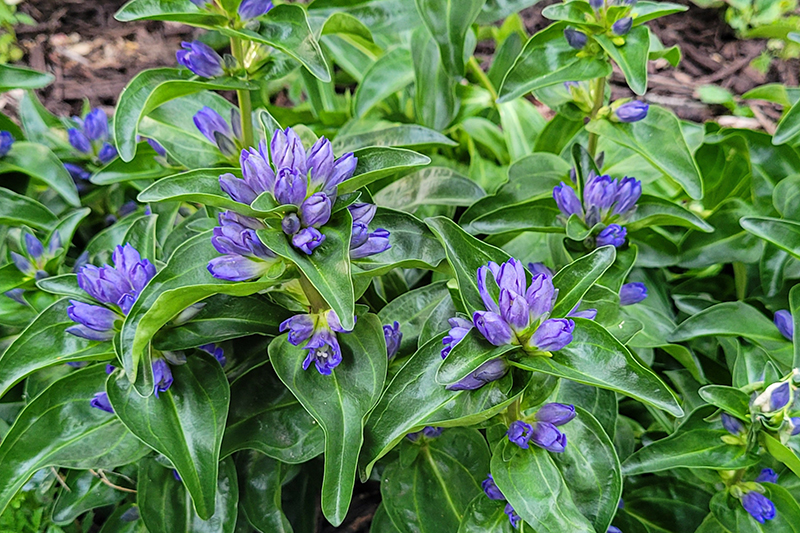 Blue Cross Gentian features dainty clusters of blue tubular flowers with violet overtones along the stems from mid summer to early fall. The flowers are excellent for cutting. Its narrow leaves remain dark green in color throughout the season.