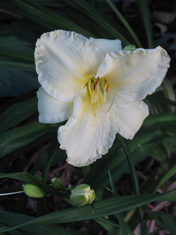 Sunday Gloves Daylily will grow to be about 24 inches tall at maturity extending to 32 inches tall with the flowers, with a spread of 24 inches. When grown in masses or used as a bedding plant, individual plants should be spaced approximately 18 inches apart. It grows at a medium rate, and under ideal conditions can be expected to live for approximately 10 years. As an herbaceous perennial, this plant will usually die back to the crown each winter, and will regrow from the base each spring. Be careful not to disturb the crown in late winter when it may not be readily seen!