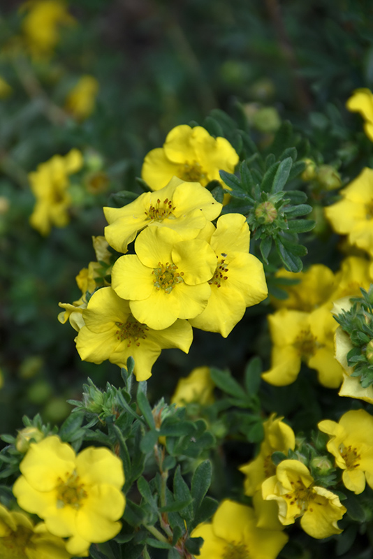 This naturally compact upright mounded shrub produces bright, enthusiastic yellow flowers all season long; fine textured dark green foliage makes a good groundcover; hardy, tough and adaptable to all conditions, but dislikes wet soils