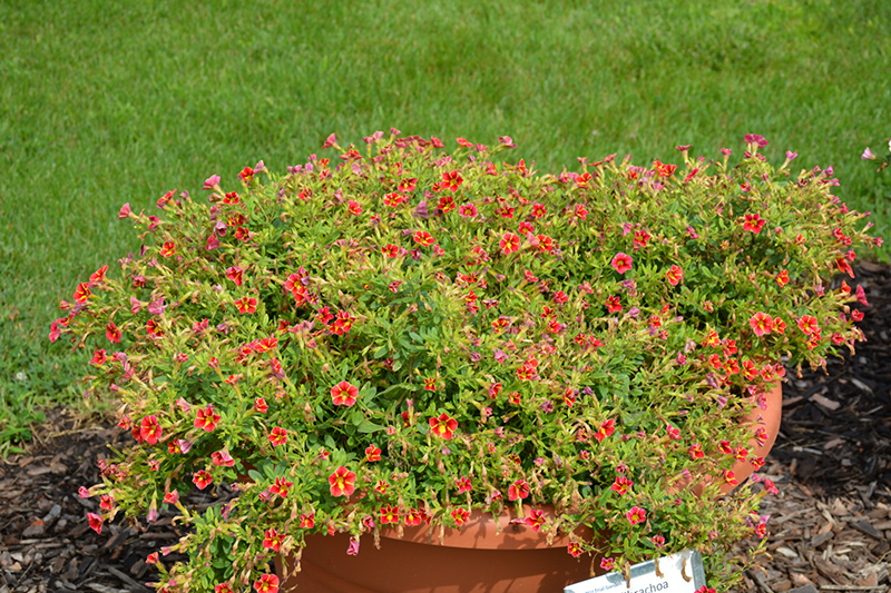 Superbells® Cardinal Star™ Calibrachoa is a fine choice for the garden, but it is also a good selection for planting in outdoor containers and hanging baskets. Because of its trailing habit of growth, it is ideally suited for use as a 'spiller' in the 'spiller-thriller-filler' container combination; plant it near the edges where it can spill gracefully over the pot. Note that when growing plants in outdoor containers and baskets, they may require more frequent waterings than they would in the yard or garden.