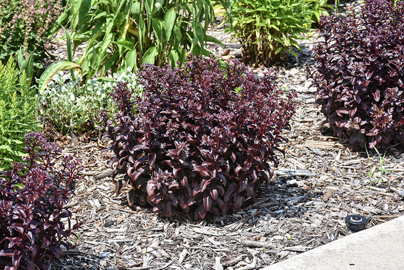 Dark Magic Stonecrop will grow to be about 12 inches tall at maturity, with a spread of 20 inches. When grown in masses or used as a bedding plant, individual plants should be spaced approximately 16 inches apart. It grows at a fast rate, and under ideal conditions can be expected to live for approximately 15 years. As an herbaceous perennial, this plant will usually die back to the crown each winter, and will regrow from the base each spring. Be careful not to disturb the crown in late winter when it may not be readily seen!