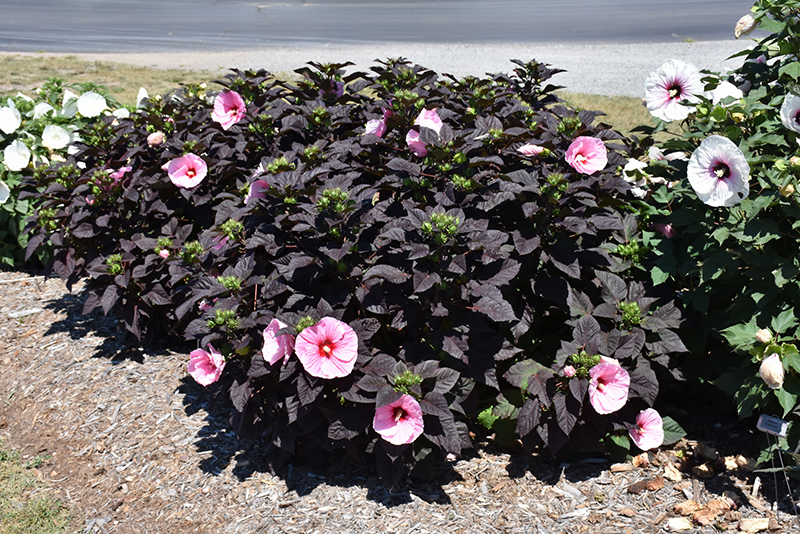 Summerific® Edge of Night Hibiscus will grow to be about 3 feet tall at maturity, with a spread of 4 feet. When grown in masses or used as a bedding plant, individual plants should be spaced approximately 4 feet apart. It grows at a fast rate, and under ideal conditions can be expected to live for approximately 5 years. As an herbaceous perennial, this plant will usually die back to the crown each winter, and will regrow from the base each spring. Be careful not to disturb the crown in late winter when it may not be readily seen!