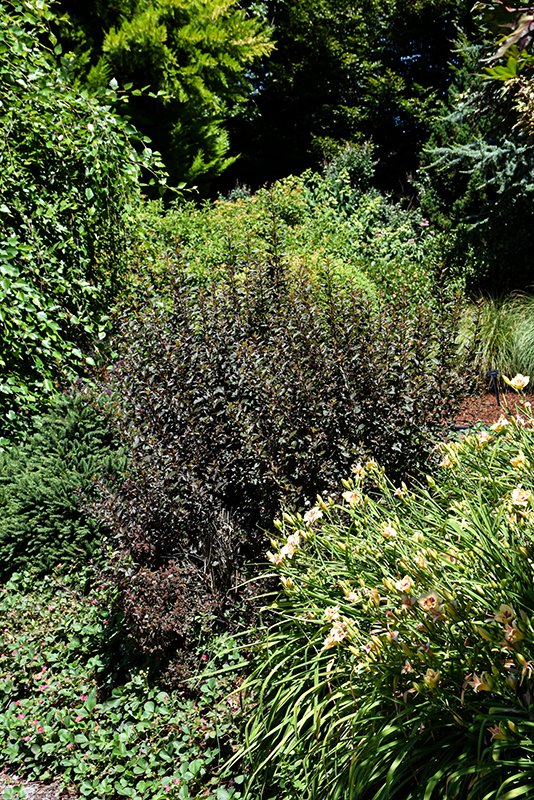 A very compact shrub with burgundy leaves; features small pinkish-white spirea-like flowers followed by subtle reddish fruit, and interesting peeling papery bark; extremely tough and durable, good for small spaces or border fronts