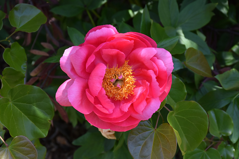 Cytherea Peony features bold lightly-scented semi-double rose flowers with coral-pink overtones at the ends of the stems in late spring. The flowers are excellent for cutting. Its glossy compound leaves remain dark green in color throughout the season.