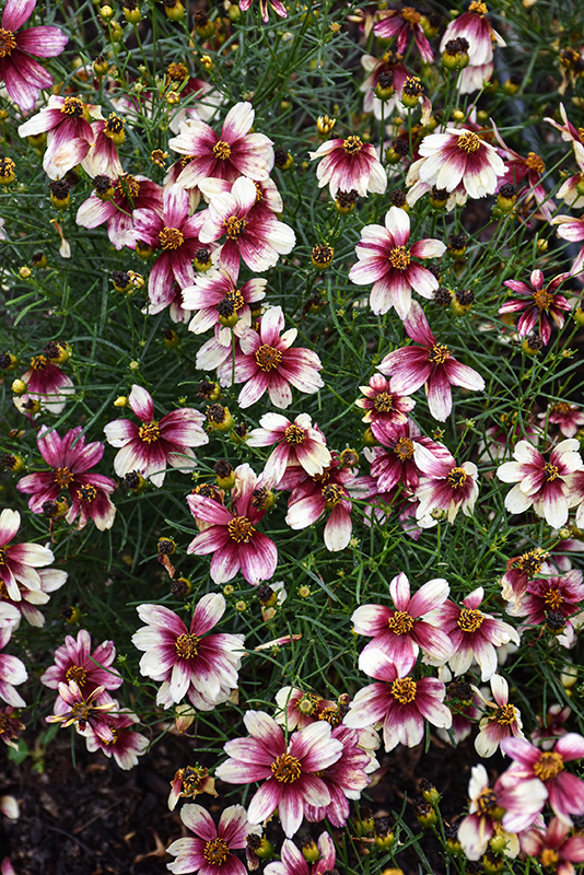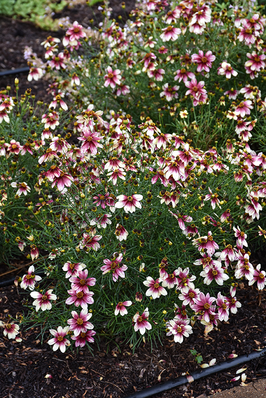 Sizzle And Spice®Zesty Zinger Tickseed is smothered in stunning creamy white daisy flowers with fuchsia centers at the ends of the stems from early to late summer, which emerge from distinctive yellow flower buds. The flowers are excellent for cutting. Its threadlike leaves remain bluish-green in color throughout the season.