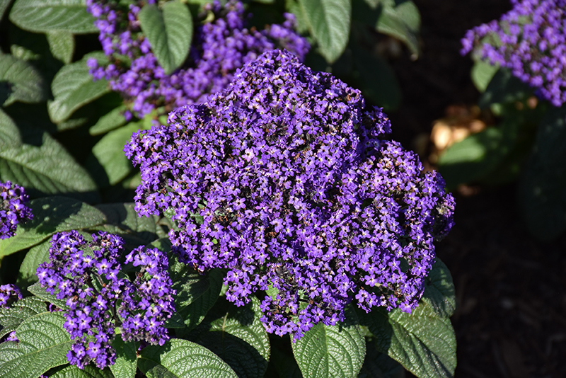 Aromagica® Purple Heliotrope has masses of beautiful clusters of fragrant deep purple flowers at the ends of the stems from late spring to early fall, which are most effective when planted in groupings. Its textured pointy leaves remain dark green in color throughout the season.