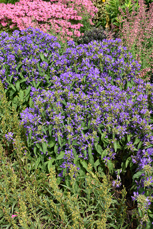 Bells and Whistles Clustered Bellflower will grow to be about 24 inches tall at maturity, with a spread of 22 inches. Its foliage tends to remain dense right to the ground, not requiring facer plants in front. It grows at a fast rate, and under ideal conditions can be expected to live for approximately 8 years. As an herbaceous perennial, this plant will usually die back to the crown each winter, and will regrow from the base each spring. Be careful not to disturb the crown in late winter when it may not be readily seen!