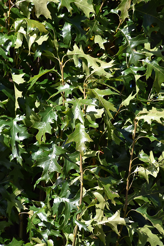 Green Pillar Pin Oak is primarily valued in the landscape for its rigidly columnar form. It has dark green deciduous foliage. The spiny lobed leaves turn an outstanding red in the fall. However, the fruit can be messy in the landscape and may require occasional clean-up.