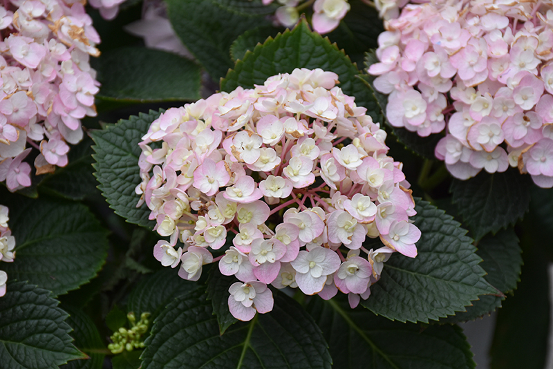 Wee Bit Innocent® Hydrangea features bold balls of double shell pink flowers with lavender overtones at the ends of the branches from early summer to early fall. The flowers are excellent for cutting. It has forest green deciduous foliage. The serrated pointy leaves do not develop any appreciable fall color.