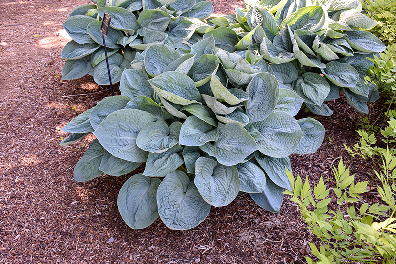 Big Daddy Hosta will grow to be about 18 inches tall at maturity extending to 28 inches tall with the flowers, with a spread of 3 feet. When grown in masses or used as a bedding plant, individual plants should be spaced approximately 30 inches apart. Its foliage tends to remain dense right to the ground, not requiring facer plants in front. It grows at a medium rate, and under ideal conditions can be expected to live for approximately 10 years. As an herbaceous perennial, this plant will usually die back to the crown each winter, and will regrow from the base each spring. Be careful not to disturb the crown in late winter when it may not be readily seen!