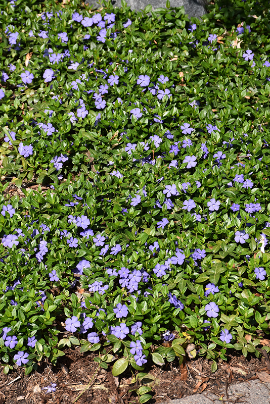 Dart's Blue Periwinkle will grow to be only 3 inches tall at maturity, with a spread of 18 inches. Its foliage tends to remain low and dense right to the ground. It grows at a fast rate, and under ideal conditions can be expected to live for approximately 10 years. As an evegreen perennial, this plant will typically keep its form and foliage year-round.