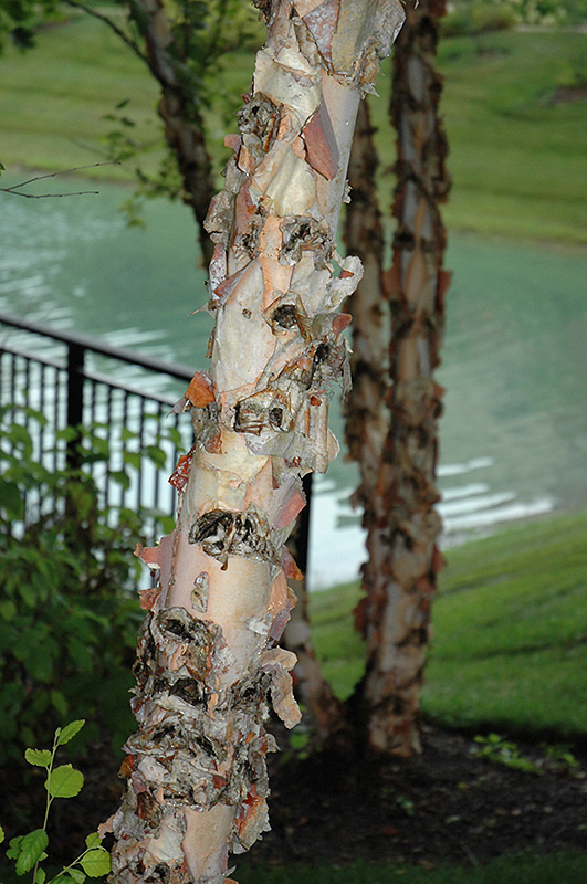 A prize native birch valued for its stunning bark, with white, brown and tan colors all peeling from mature trunks; good fall color; requires acidic soil, susceptible to chlorosis in alkaline soils